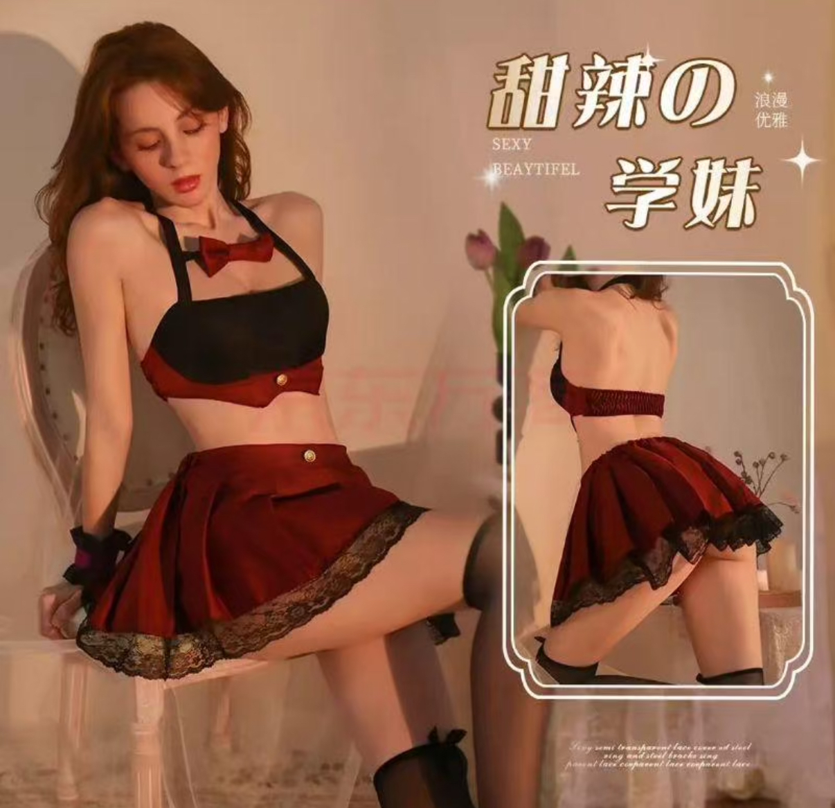 性感挂脖JK学生百褶裙制服套装角色扮演可爱情趣内衣 图片色+黑色开档袜 1164均码